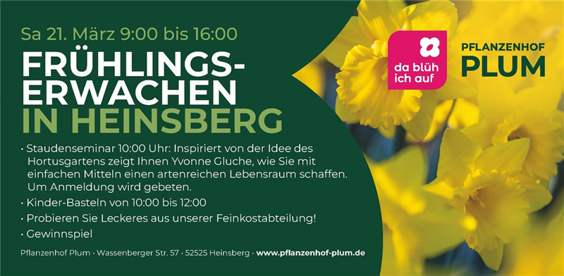 Das Team vom Pflanzenhof Plum freut sich auf Ihren Besuch. Sie erreichen uns schnell und einfach aus den Städten Heinsberg, Wassenberg, Hückelhoven, Gangelt, Geilenkirchen, Wegberg, Erkelenz und den Gemeinden Waldfeucht und Selfkant.