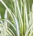 Die wintergrünen Blätter der Gelbgrüne Garten-Segge sind gelbbunt.