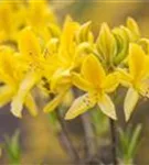 Rhododendron luteum bildet von Mitte Mai bis Ende Juni zahlreiche trichterförmige, in Dolden angeordnete, gelbe Blüten. Diese verströmen einen starken Duft.