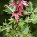 Hoher Blattschmuckwert. Die sommergrünen Blätter des Spitzahorns 'Crimson Sentry' sind purpurrot, gezähnt, gelappt. Diese sind etwa 15 - 20 cm groß. Scharlachroter Austrieb.