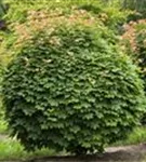 Kugelahorn 'Globosum' ist ein kugelförmig wachsender Kleinbaum mit geschlossener Krone. Er erreicht gewöhnlich eine Höhe von 5 - 6 m und wird ca. 5 - 6 m breit. Langsam wachsend. In der Regel wächst er 10 - 15 cm pro Jahr.